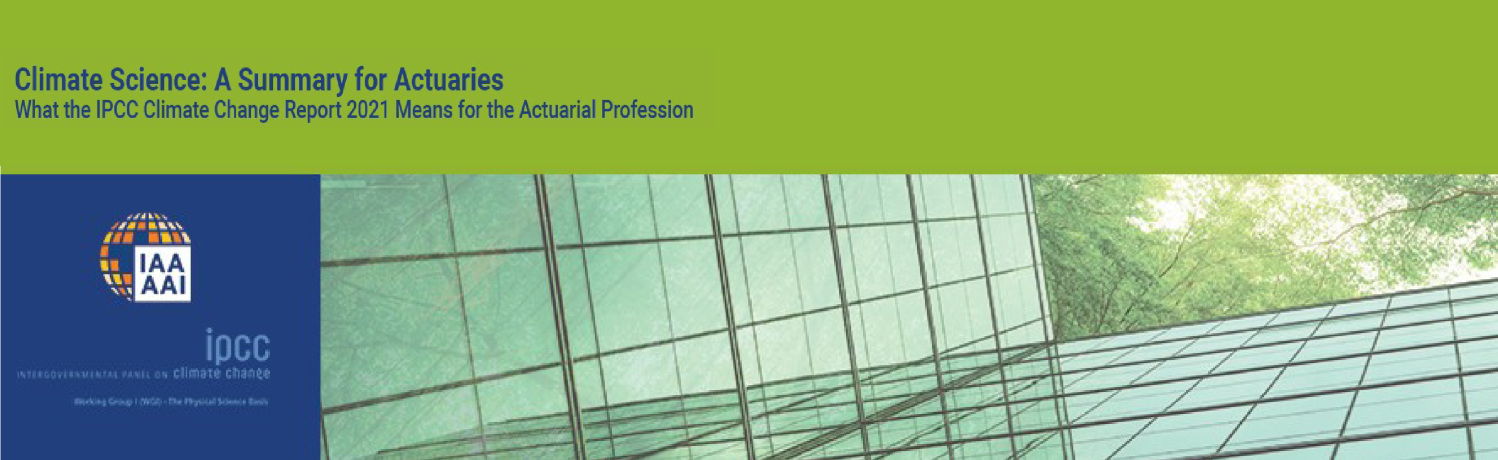 Le 16 mars 2022, l'Association actuarielle internationale (AAI) a annoncé la publication de Climate Science : A Summary for Actuaries, préparé par le groupe de travail sur le risque climatique du comité exécutif de l'AAI en association avec l'unité de soutien technique du groupe de travail I du Groupe d'experts intergouvernemental sur l'évolution du climat (GIEC) des Nations Unies. Ce résumé, basé sur le sixième rapport d'évaluation du groupe de travail I du GIEC publié en août 2021, est adapté à la communauté actuarielle afin de fournir un aperçu utile de ce que le rapport du GIEC signifie pour la profession.