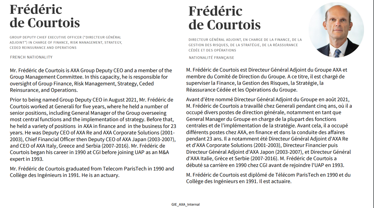 A la suite de la conférence de M. Renaud Dumora du 31 mars qui a connu un vif succès, et toujours dans le cadre de nos « Regards croisés sur la gouvernance des groupes d'assurances français à dimension internationale », les membres du club des administrateurs sont invités le 11 mai en matinée à venir écouter le point de vue de M. Frédéric de Courtois, Directeur général adjoint du Groupe AXA, membre du Comité de Direction du Groupe.