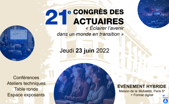 Nous sommes en pleine organisation du 21e Congrès des Actuaires qui se tiendra le jeudi 23 juin 2022 à la Maison de la Mutualité (Paris 5e) ainsi qu'en ligne. L'affiche est exceptionnelle, tant sur le plan du prestige des personnalités qui prendront la parole durant les séances plénières que du nombre record de candidatures de qualité pour l'animation d'ateliers techniques. Nous nous réjouissons également de la confiance renouvelée des partenaires de l'an dernier et de la présence de nouvelles entreprises. En attendant de vous y accueillir, inscrivez-vous sur le site du Congrès et réservez votre place pour une édition des plus prometteuses. Suivez le hashtag #congresdesactuaires sur LinkedIn et à bientôt !