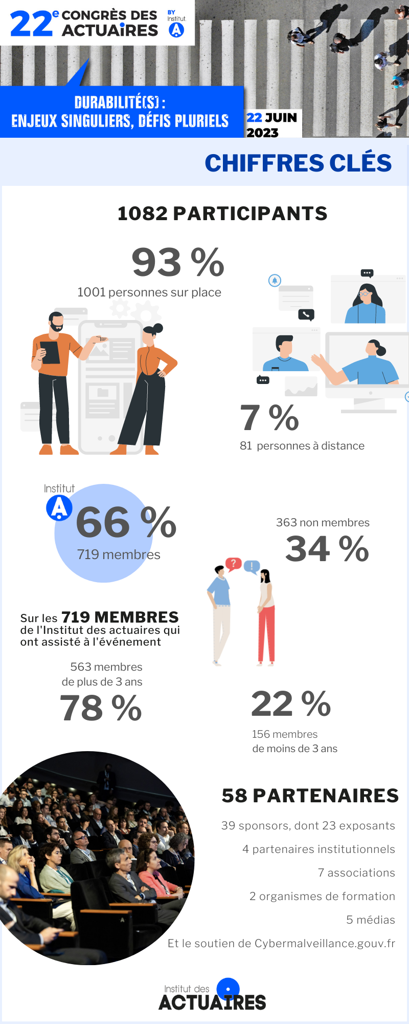 L'Institut des actuaires a eu le plaisir de réunir la communauté actuarielle lors de son événement majeur, le 22ème Congrès des Actuaires, qui s'est tenu le 22 juin dernier au Palais des Congrès de Paris et en ligne. L'événement a tenu ses promesses avec un record de participants et de partenaires, des échanges de très haut niveau entre participants et intervenants, et une réelle convivialité.