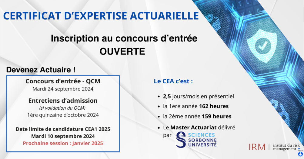 > UN ENTRETIEN INDIVIDUEL DE MOTIVATION, première quinzaine d’octobre 2024 (si validation du QCM). Il permettra de juger de la qualité du parcours (formation et expérience professionnelle), de la cohérence du projet professionnel, de la connaissance du mouvement actuariel et du rôle de l’actuaire, de la capacité à évaluer son niveau et l’investissement nécessaire, et de la capacité à réaliser un mémoire d’actuariat.